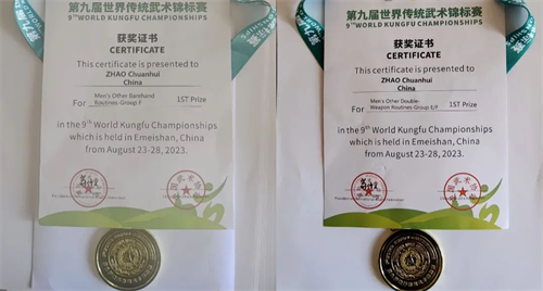 山西省形意拳協(xié)會(huì)趙川輝、田宏偉作為中國代表團(tuán)成員參加了海外比賽,取得了優(yōu)異成績。趙川輝獲第九屆世界傳統(tǒng)武術(shù)錦標(biāo)賽其他拳擊(形意拳)一等獎(jiǎng)、雙裝備(麒麟刀)一等獎(jiǎng);田宏偉獲第九屆世界傳統(tǒng)武術(shù)錦標(biāo)賽單裝備二等獎(jiǎng)、形意拳三等獎(jiǎng)。